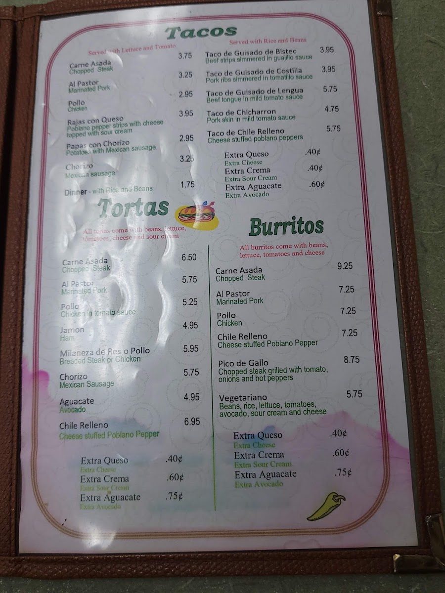 The menu includes favorites like gorditas stuffed with carne asada or al pastor, flavorful tacos such as carne asada and lengua, as well as generous burritos that make for a satisfying meal any time of day. Seasonal and house specialties like costillita tacos in salsa verde bring a rich, homey touch that pairs well with the warm, welcoming atmosphere of the restaurant.