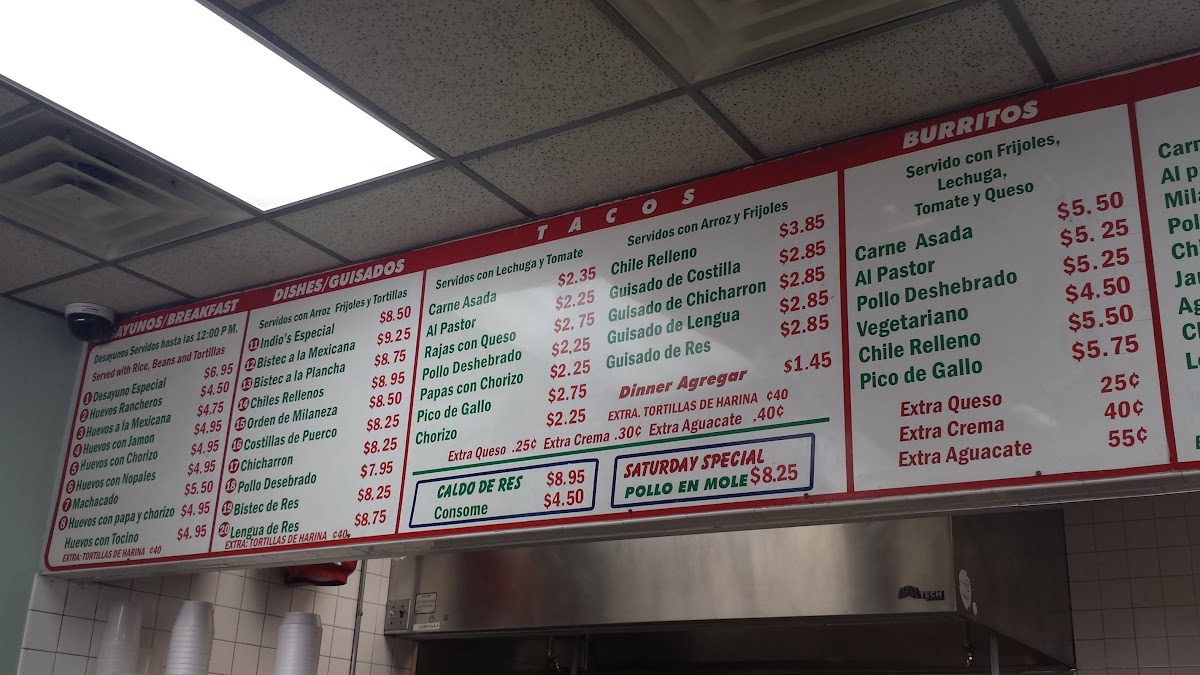 Indio Restaurant offers a straightforward and inviting menu that reflects the comforting and familiar flavors of traditional Mexican cuisine. The lineup features a variety of casual bites perfect for a quick lunch or relaxed dinner, with hearty options that satisfy those seeking both convenience and authenticity.
